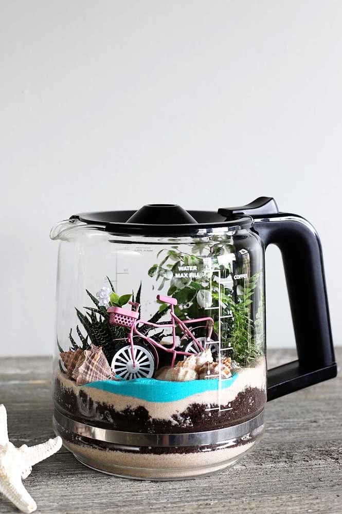Imagem 45 – Aquela jarra quebrada do processador pode virar um terrário lindo!