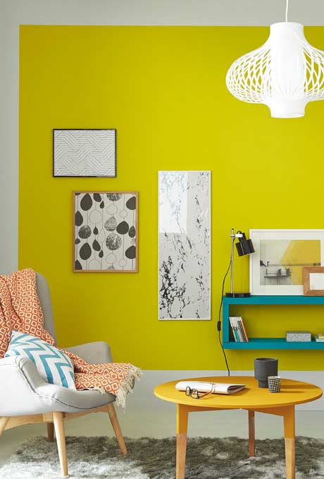 Imagem 40 – Mais um tom de amarelo cítrico na parede combinado com outras cores vibrantes no ambiente.