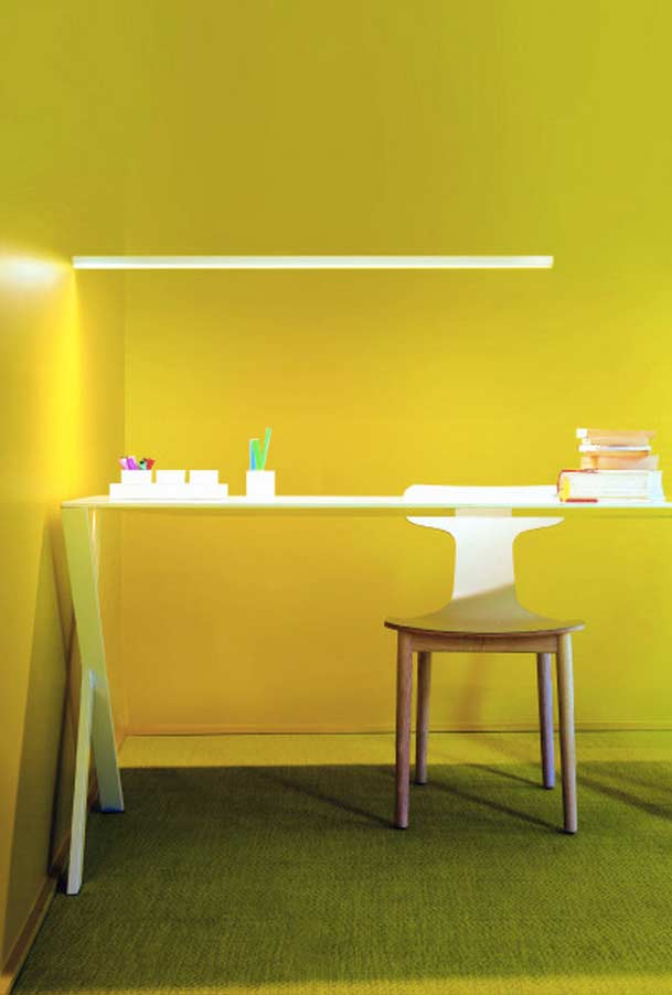 Imagem 46 – Meia parede amarela em degradê: inserindo cor num ambiente neutro.