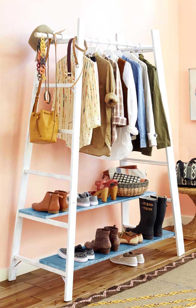 Imagem 22 – O closet aberto pode ser feito com escadas e ripas de madeira.