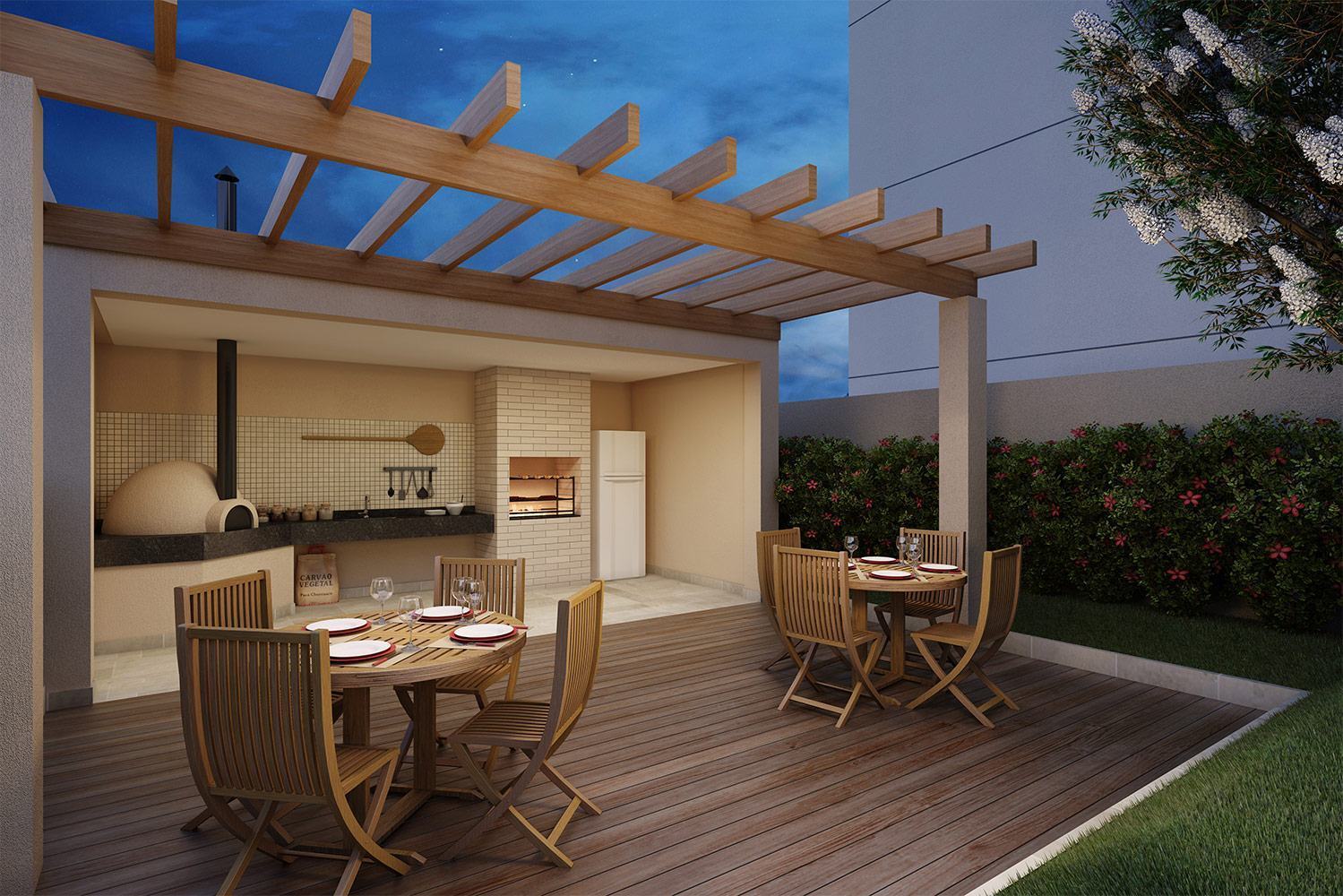 Imagem 14 – Mesmo com o ar contemporâneo a proposta de uma área para churrasco se mostra moderna e agradável