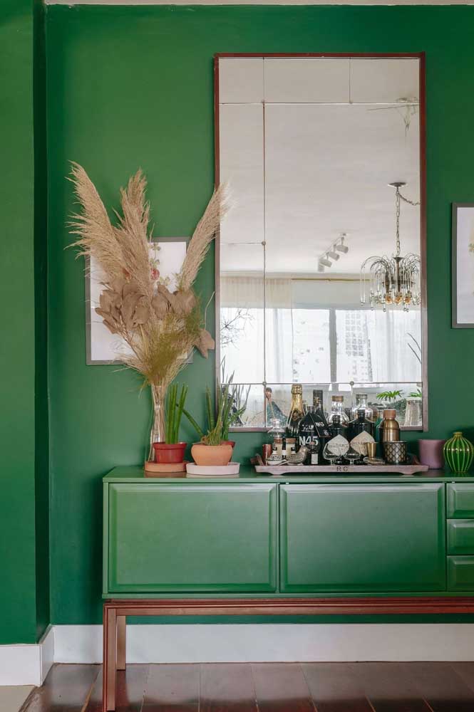 Imagem 11 – O que acha de usar tinta verde esmeralda naquele móvel antigo? Aproveite e pinte a parede também!
