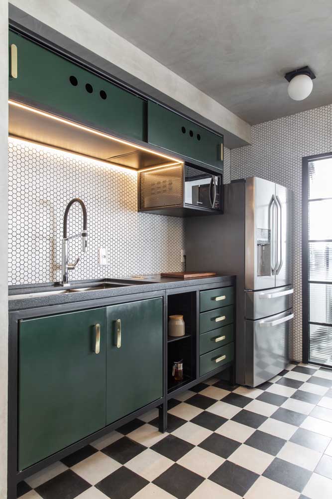 Imagem 22 – Armário verde esmeralda na cozinha moderna.